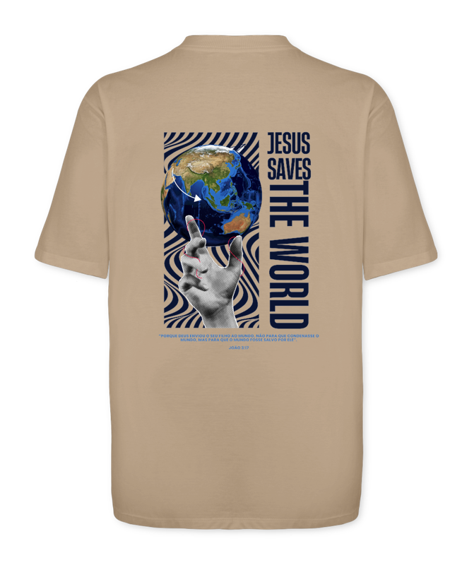 Camisa Oversized Jesus Saves The World - Bege